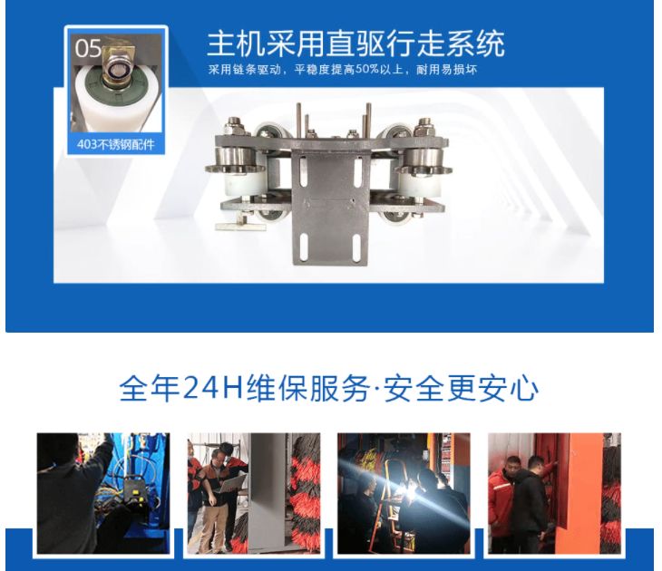 4、新一代自动洗车机拥有智能云检修系统,对洗车机的问题、故障总能提前知道,提前保养,防微杜渐。